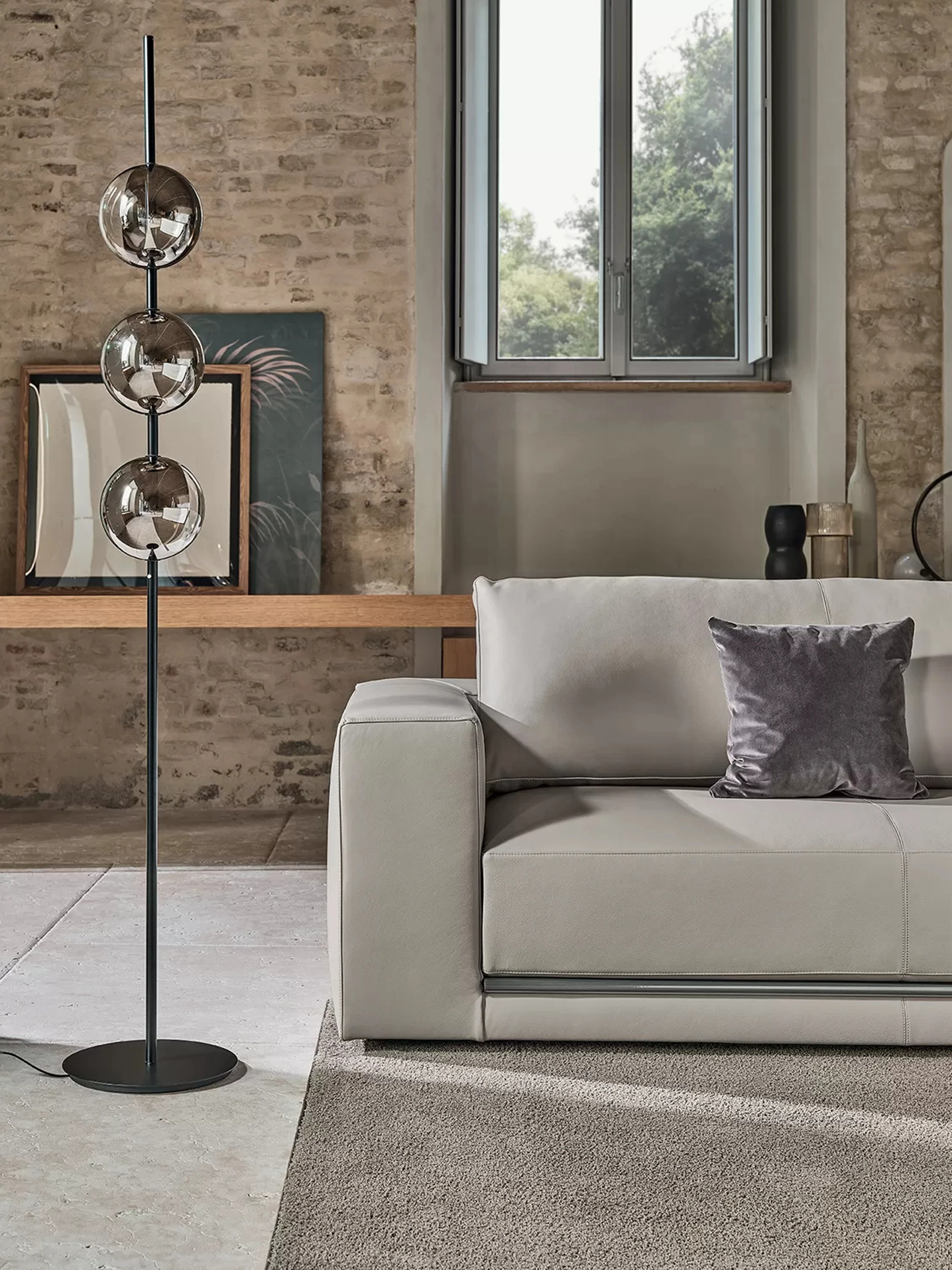 Il mondo delle lampade è parte di primo piano di ogni spazio domestico dato che agevola tutti i gesti che compiamo: design e tecnologia si incontrano al meglio. In negozio ci occupiamo di seguirti nel progettare l'illuminazione domestica con le luci: vieni a vedere dal vivo la soluzione che fa al caso tuo. Questa lampada da terra in vetro per interni fa parte della varia offerta di elementi accessori di tendenza per la casa del conosciuto marchio Bontempi. Bontempi è specializzata in campo illuminotecnico e propone una ricca offerta di lampade da terra per interni ideali per le tue problematiche abitative.