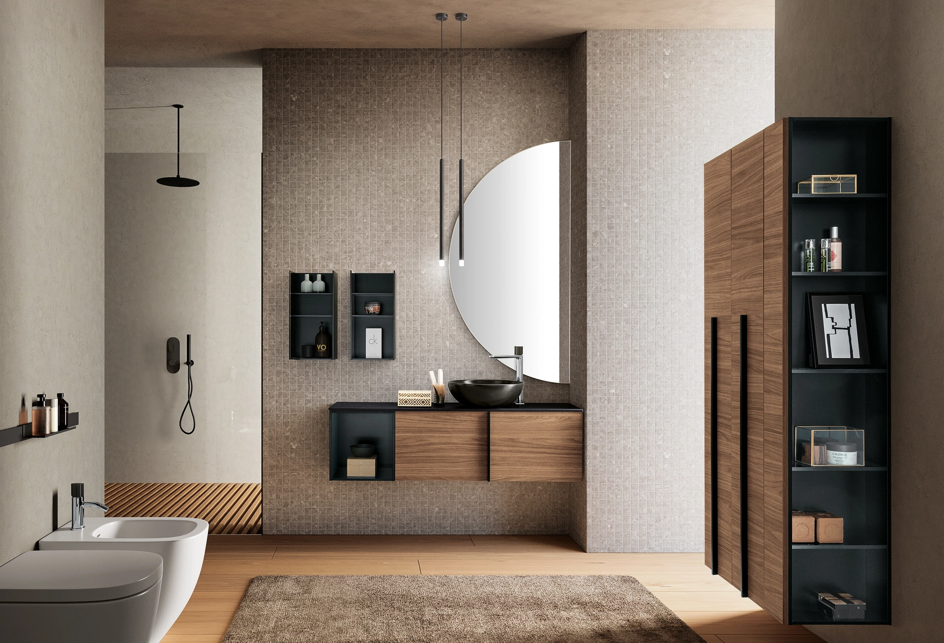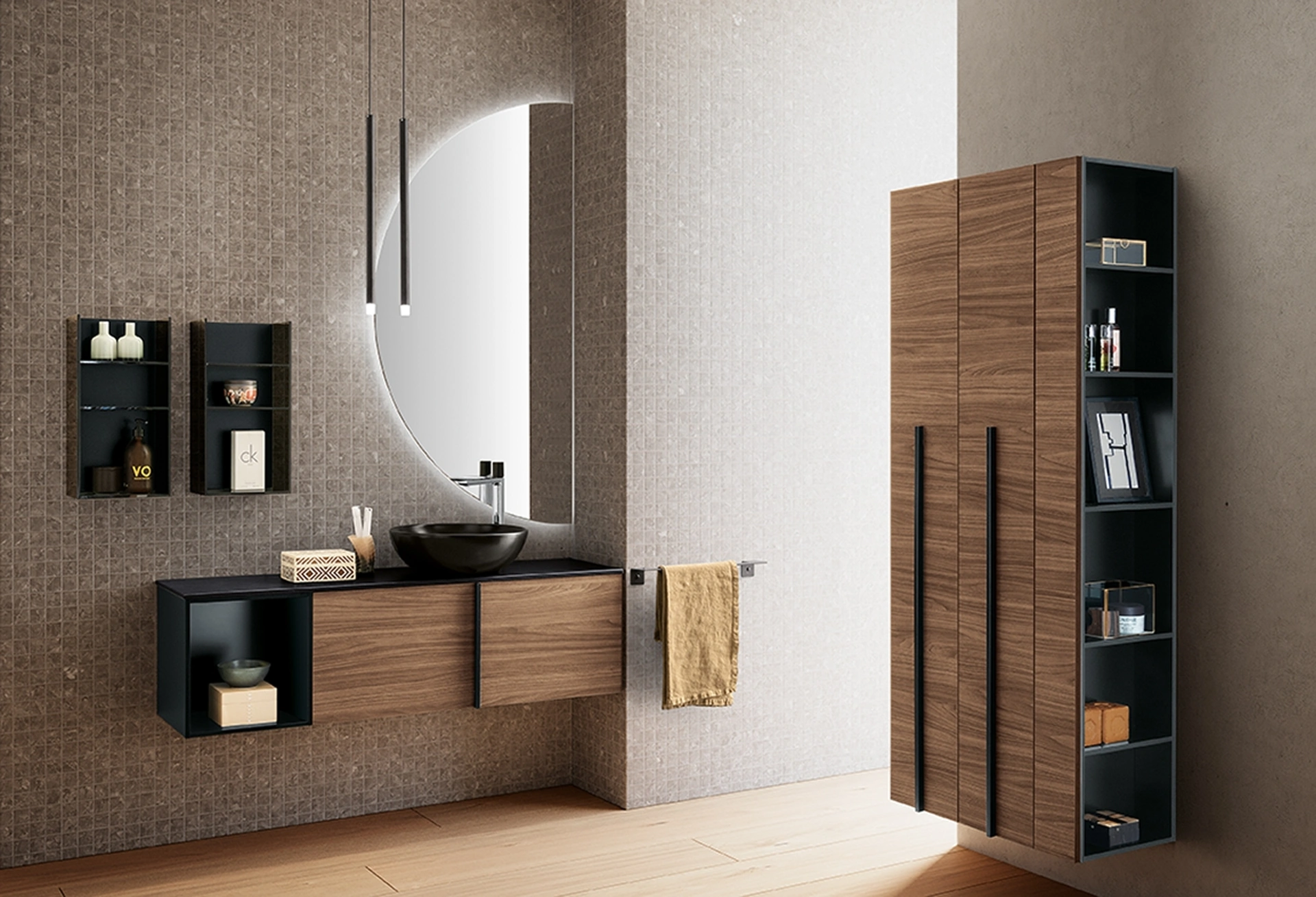 La sala da bagno è lo spazio deputato al relax e alle pratiche di cura della propria persona, perciò va progettato unendo doti di praticità e design. Le tonalità, le finiture e glielementi che il marchio presenta per l’Arredo Bagno moderno con mobili bagno sospesi offrono l'opportunità di progettare diversi contesti. I bagni di casa variano sia per stile che per dimensioni, perciò è essenziale che ciascuno trovi la soluzione ideale per le proprie necessità. Qui ti proponiamo il modello di Mobile da Bagno sospeso Essenze 13 di Archeda in legno che connota perfettamente lo spazio garantendo la funzionalità. Con un'ampia gamma di composizioni del brand Archeda potrai progettare la sala da bagno nei più piccoli particolari, risolvendo le tue esigenze abitative.
