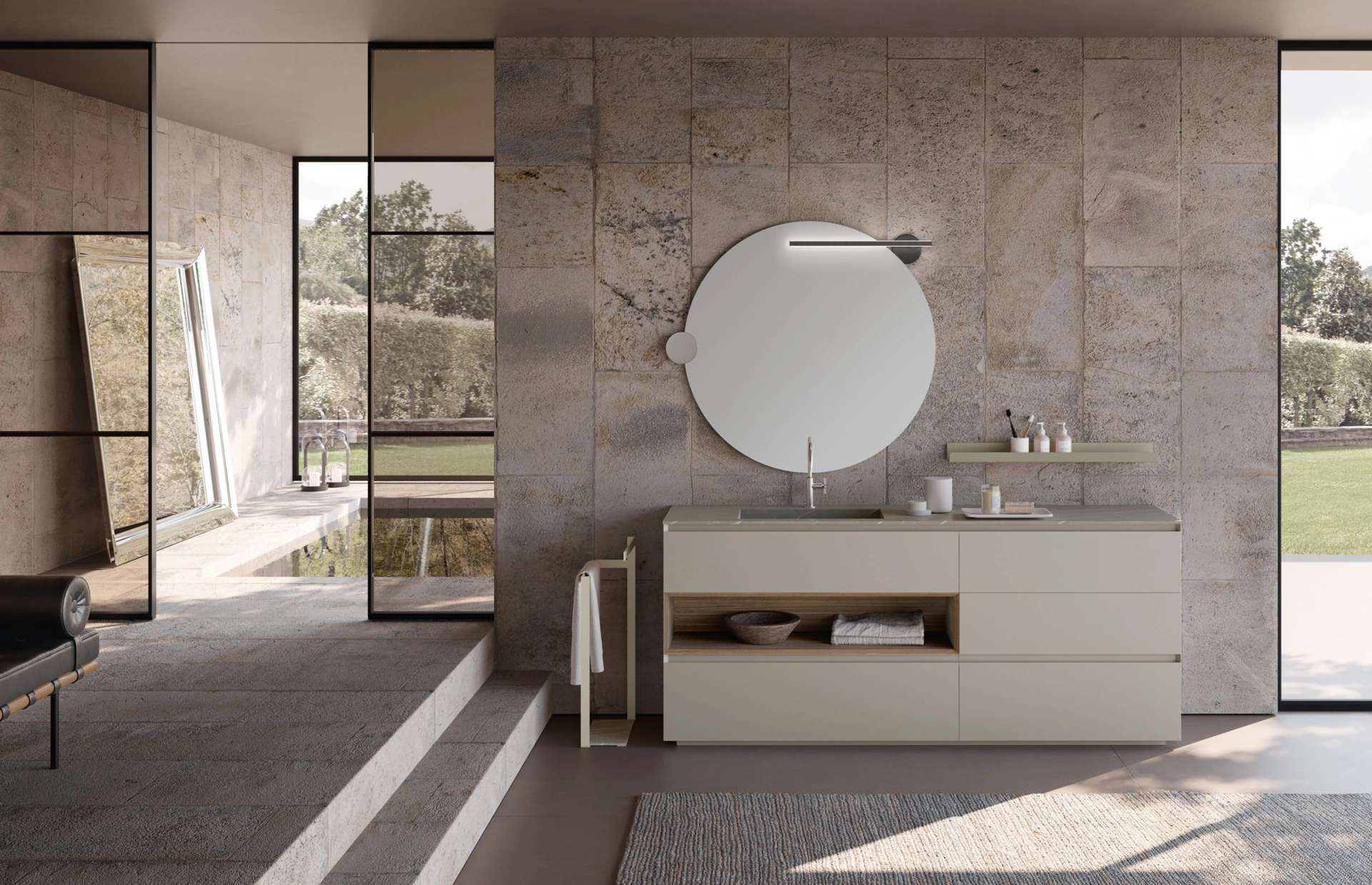 Bello e utile in ogni stanza da bagno, un modello in laccato opaco moderno come quello nella fotografia risolverà le tue problematiche abitative di ogni genere. Con le tipologie che presentiamo ti garantirai arredi fatti a regola d'arte e di design anche per il bagno, che va progettato con cura, con praticità e design. Il modello Mobile da Bagno M3 System 315 di Baxar in laccato opaco fa parte della completa offerta di arredi per la stanza da bagno del brand, sempre di charme. In showroom potrai vedere dal vivo le più belle composizioni arredative del rinomato brand: ti aspettiamo per arredare insieme la stanza del benessere. Baxar progetta proposte per l’Arredo Bagno moderno con mobili bagno a terra che uniscono design unico e grande ergonomia, come questo interno vuole.
