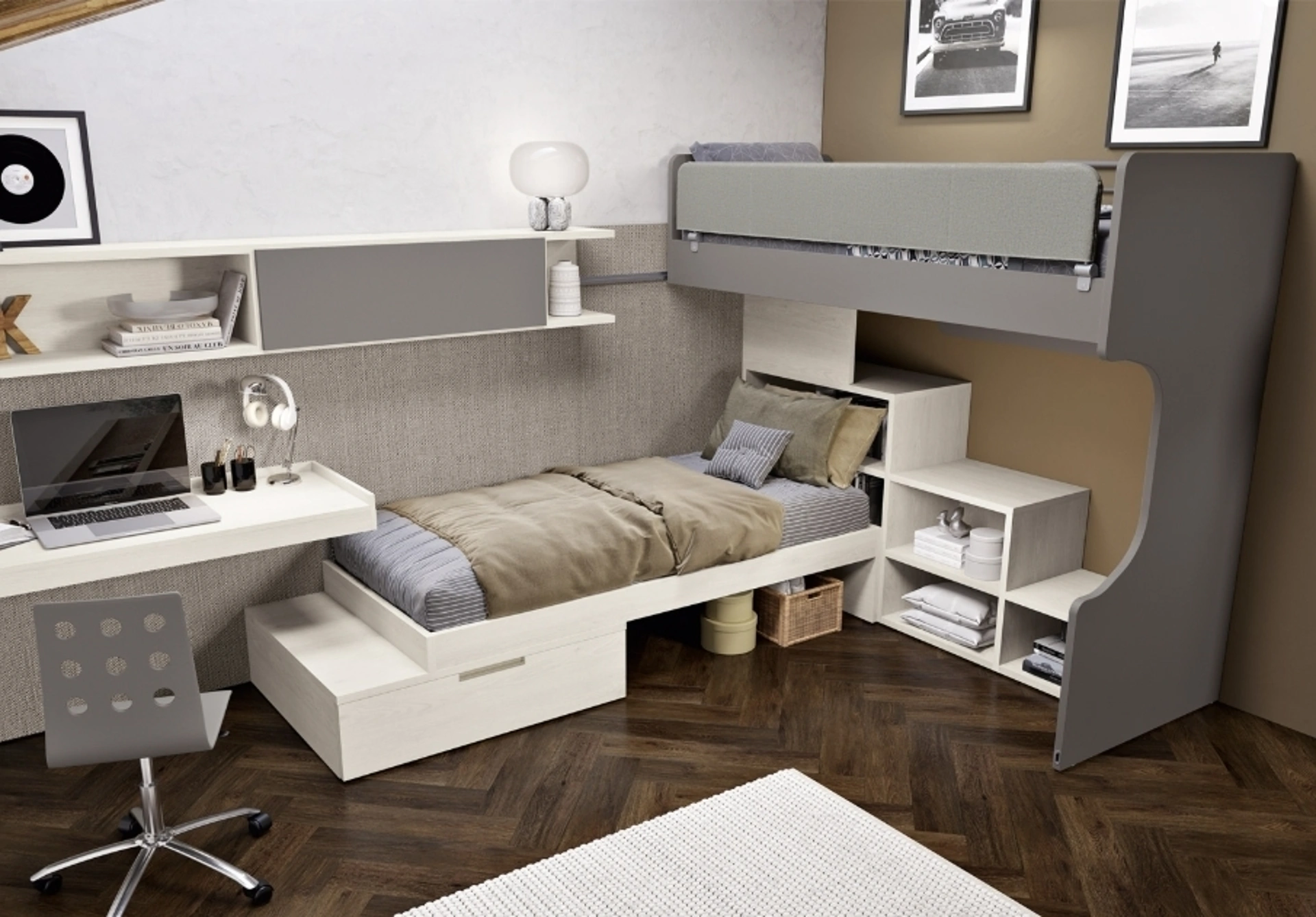 Ferrimobili mette a disposizione una ricca gamma di accessori da accostare su misura: troverai letto, guardaroba, scrivania, sedie e librerie. Se cerchi idee creative per arredare ottimamente la stanza dei tuoi bambini, ti proponiamo la Cameretta 139 con letto scorrevole di Ferrimobili con finitura in melaminico. Questa proposta in melaminico ultima ottimamente le doti pratiche e il valore estetico della camaretta, poiché è capace di unire ergonomia e sicurezza. Porta design e colori vivaci nella stanza dedicata ai più piccoli con questa proposta, una delle Camerette con letti scorrevoli per bambini di Ferrimobili.