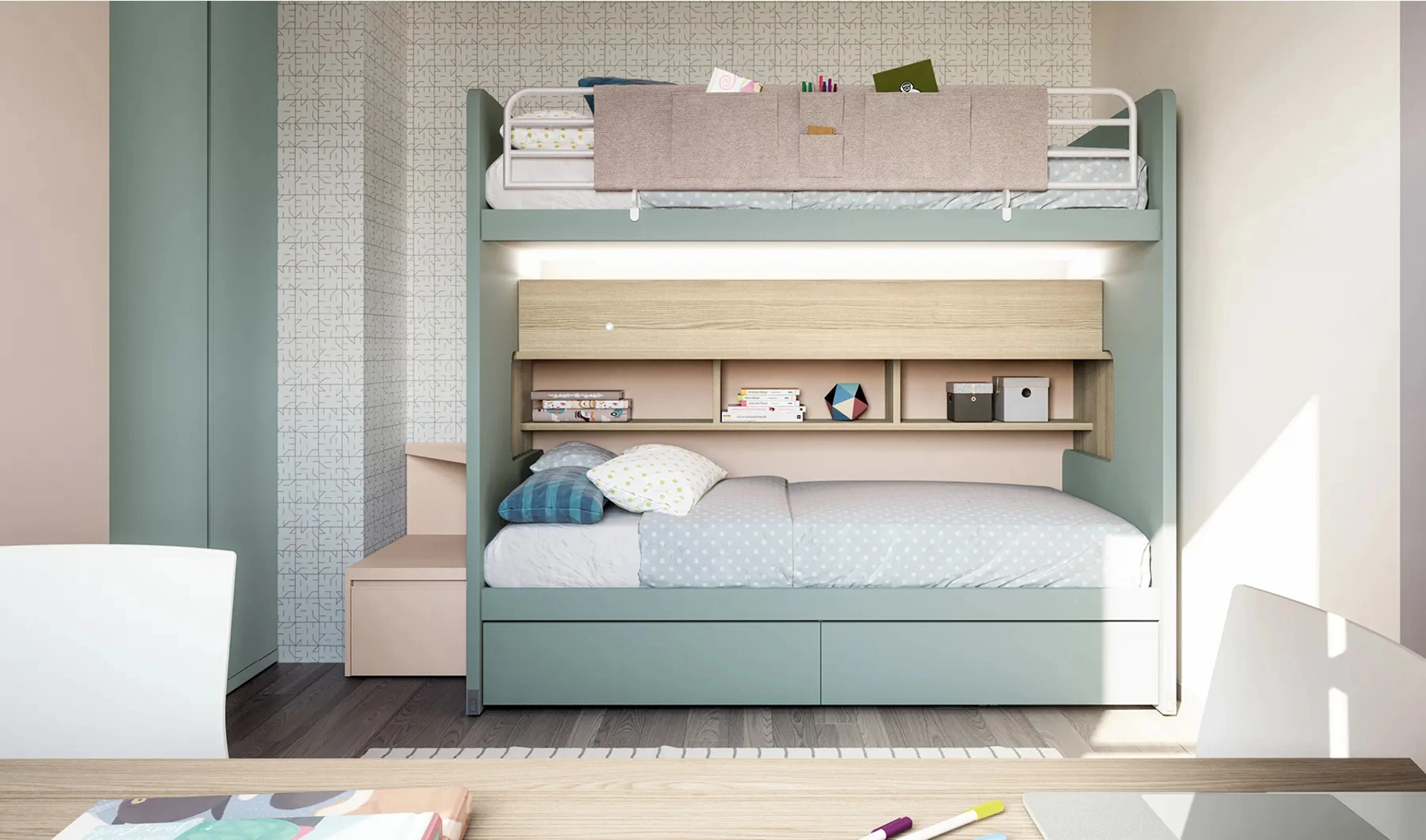 Vieni nel nostro showroom e potrai visionare in prima persona tutte le più belle composizioni d'arredo con letti a castello moderne di Doimo Cityline per i più giovani. Cromie di tendenza e soluzioni progettuali ad hoc contraddistinguono le più belle proposte del noto e rinomato brand che presentiamo nel nostro showroom. Con una composizione arredativa Doimo Cityline, potrai ultimare con praticità e design il luogo in cui i tuoi figli trascorrono gli anni più importanti della vita. La Cameretta Layout 13B di Doimo Cityline in melaminico è un universo articolato da progettare con attenzione, mixando differenti accessori su misura.