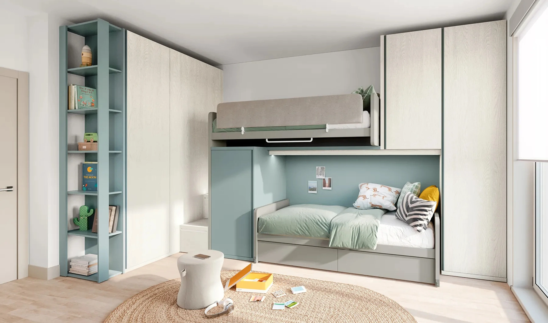 Con una composizione arredativa Doimo Cityline, potrai completare con funzionalità e design lo spazio in cui i tuoi figli trascorrono gli anni importanti della vita. Colori di tendenza e soluzioni progettuali d'eccellenza connotano le più originali proposte del noto e conosciuto brand che proponiamo nel nostro showroom. Doimo Cityline asseconda lo stile dei piccoli e le esigenze degli adulti con le sue Camerette moderne a soppalco, ideali per necessità di ogni genere. La Cameretta Layout 14B di Doimo Cityline in melaminico è un mondo articolato da arredare con attenzione, mixando vari elementi accessori su misura.