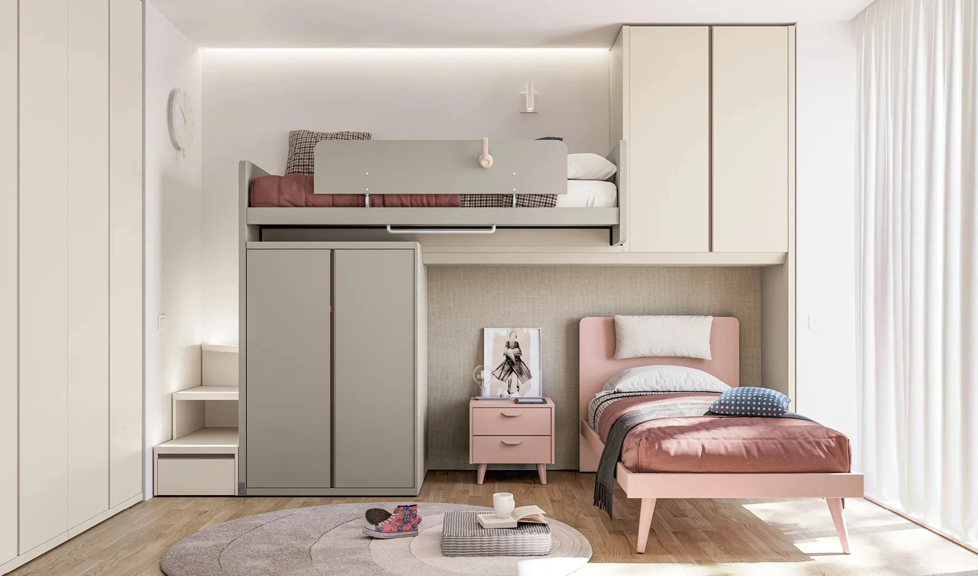Per progettare ottimamente le Camerette, Doimo Cityline presenta progetti articolati e versatili: sono tante le attività che i tuoi figli svolgono lì. Il noto marchio realizza svariate soluzioni moderne, in tal modo la cameretta diventa una stanza dove i bambini saranno contenti di crescere e riposare. Con la Cameretta Layout 15B di Doimo Cityline renderai la stanza dei tuoi figli un luogo davvero confortevole e sicuro, che li seguirà mentre diventano grandi. Questa soluzione con finitura in laccato opaco, tra quelle a soppalco per bambine di Doimo Cityline, soddisfa le esigenze degli adulti e i gusti dei piccoli.