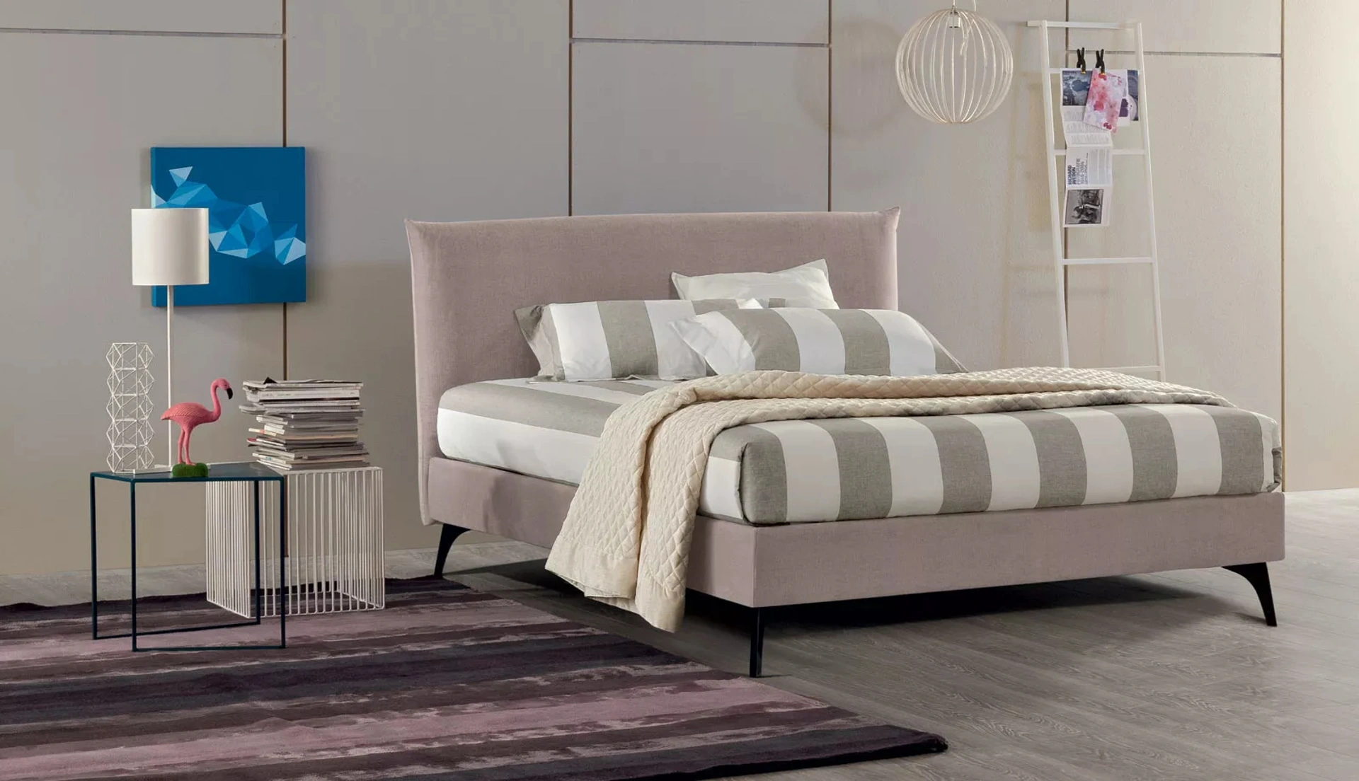 Durante l'acquisto della giusta tipologia di letto, valuta con attenzione le sue dimensioni, i materiali, la forma e il suo stile rispetto ai restanti pezzi d'arredo. Se desideri una soluzione in tessuto, il modello mostrato in foto è contraddistinto da materiali di qualità e forme decise, che invitano a goderti un sonno tranquillo e ristoratore. I Letti matrimoniali imbottiti del brand, specialista nella realizzazione di Arredamento Casa per la camera da letto, sono pensati per essere abbinati a mobili e oggetti accessori di ogni genere, come armadi e comodini, abat jour e piantane. Scegli cromie e texture e realizza il tuo concept d’arredo nella camera da letto, progettandola proprio come l'avevi immaginata.