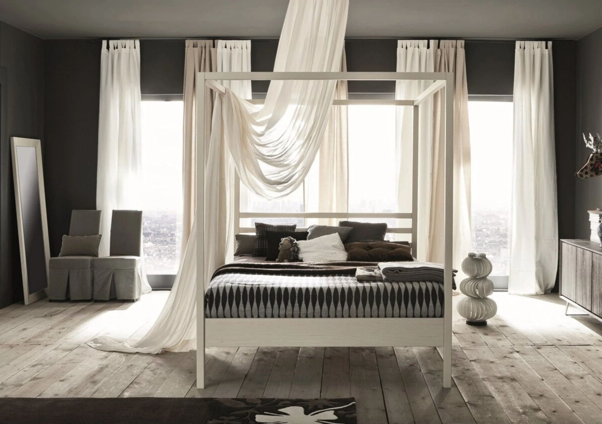 Qualità dei materiali e grande comfort sono gli aspetti che connotano tutti i prodotti del marchio, tra cui anche il letto in legno nell'immagine. Se desideri creare un'atmosfera intima e rasserenante, il modello presente in foto fa per te: nella stanza del riposo dovrai creare un'atmosfera rasserenante, per farti ritemprare le energie psicofisiche come meritate. Scopri in negozio una ricca gamma di Letti con testiera, mobili e oggetti accessori per la zona notte delle migliori marche. Con il Letto a baldacchino Nemo di Alta Corte del rinomato brand, leader del settore, potrai completare la tua zona notte garantendoti comodità, praticità e uno stile raffinato.