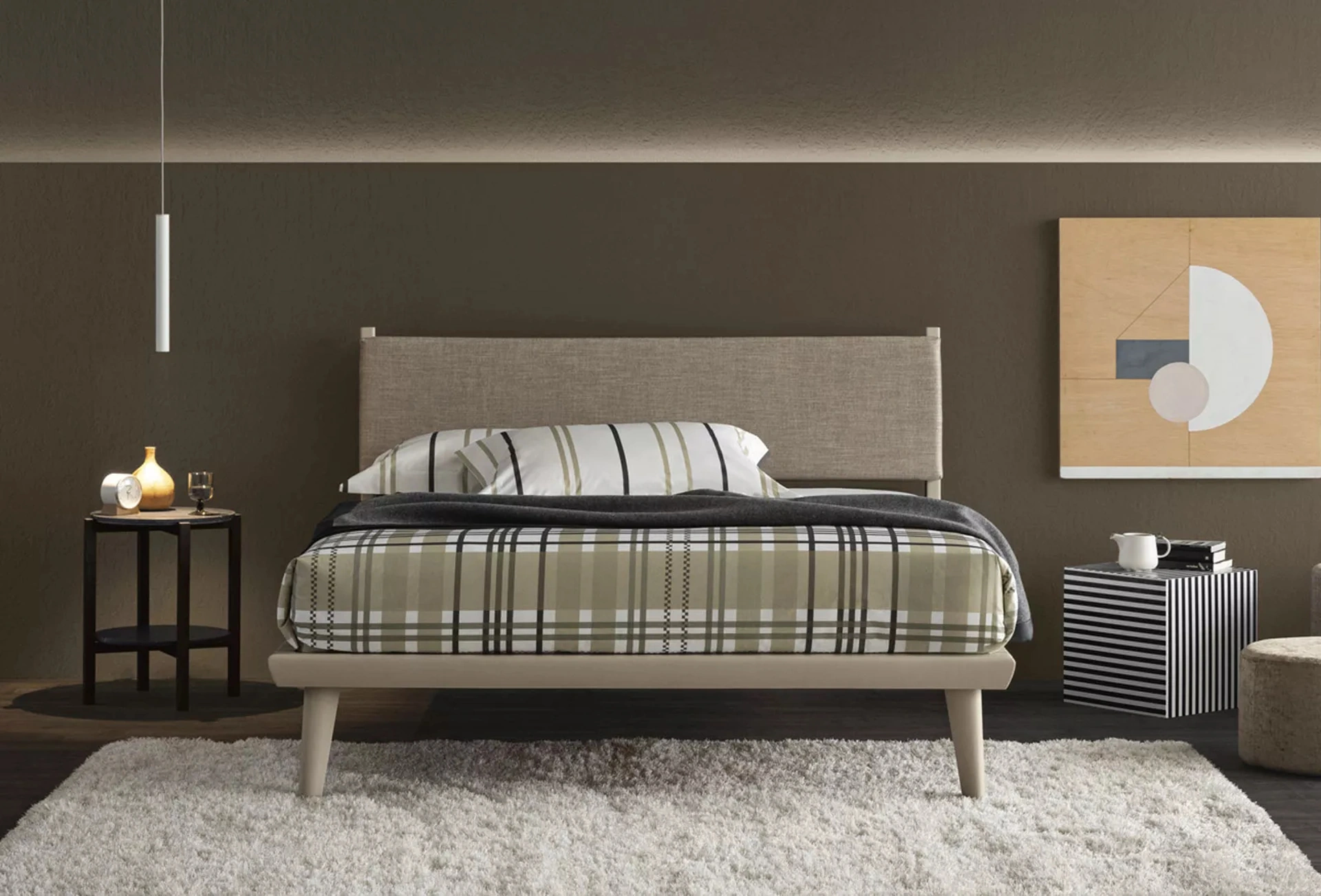 Con il Letto con testiera Orimento di Oggioni del noto e rinomato marchio, leader del settore, potrai valorizzare la tua zona notte assicurandoti comodità, praticità e un design pulito. Qualità delle finiture e grande comfort sono gli ingredienti che connotano tutti i prodotti della marca, tra cui anche il letto in tessuto in foto. Scopri nel nostro showroom un ricco catalogo di Letti imbottiti, mobili e oggetti accessori per la zona notte dei migliori brand. Se desideri ricreare un'ambientazione intima e distensiva, il modello mostrato in foto fa al caso tuo: nella stanza del riposo dovrai ricreare un'ambientazione distensiva, per farti rigenerare le energie psicofisiche tutte le notti.