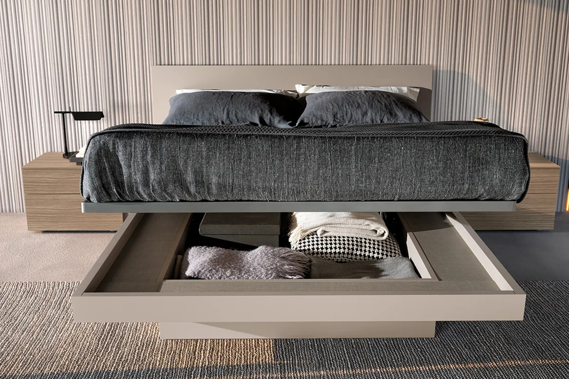 La camera è lo spazio di casa che più rappresenta la personalità di chi la usa, locale in assoluto dedicato al riposo, alla distensione e alla privacy. Scopri una ricca gamma di letti con contenitore dei migliori produttori di Arredamento Casa disponibili nel nostro showroom e valorizza la tua camera. Se desideri assicurarti l'agio più totale nei tuoi momenti di riposo, scegli i Letti matrimoniali design in laccato opaco come il modello visibile in foto. Il Letto Sirio con contenitore di Adok è una tra le più esclusive soluzioni della firma, specialista del riposo, capace di garantire praticità, comodità e uno stile unico.
