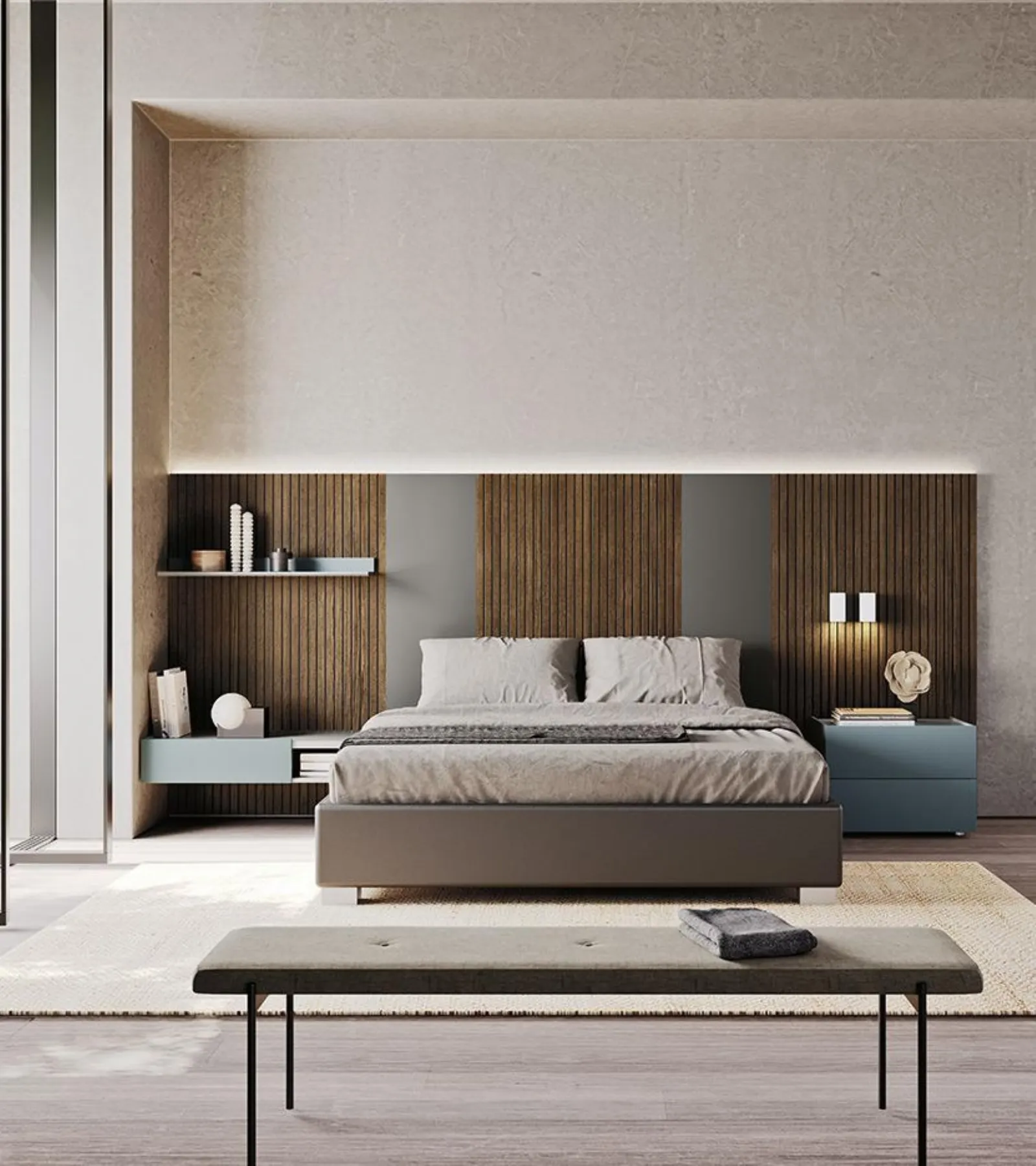 La zona notte è lo spazio di casa che più rappresenta la personalità di chi la utilizza, locale per eccellenza dedicato al relax, alla distensione e alla privacy. Nel nostro sito troverai le proposte più valide dei migliori brand specializzati nell'arredo per la camera da letto, con un’ampia possibilità di personalizzazione in quanto a colori e abbinamenti, elementi accessori e molto altro. Se vuoi assicurarti l'agio più totale nei tuoi momenti di riposo, scegli i Letti matrimoniali moderni in legno come il modello mostrato in foto. Il Letto matrimoniale Sistema Sipario di Mobilgam è una delle più esclusive soluzioni della marca, specialista del riposo, capace di assicurare funzionalità, comodità e un design unico.