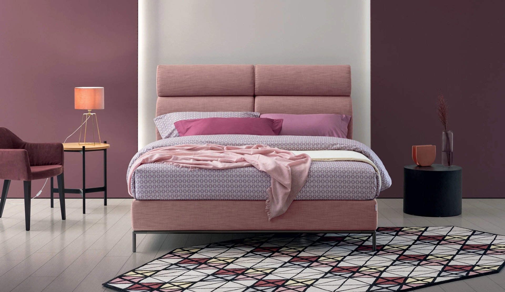 La camera è l'ambiente di casa che più riflette il gusto di chi la usa, locale per eccellenza dedicato al riposo, alla distensione e alla riservatezza. Scopri un ricco catalogo di letti imbottiti dei migliori brand di Arredamento Casa disponibili in negozio e valorizza la tua camera. Se desideri assicurarti la comodità più totale nei tuoi momenti di relax, scegli i Letti matrimoniali moderni in tessuto come il modello visibile in foto. Il Letto in tessuto Veglio di Oggioni è una delle più originali soluzioni del brand, specialista del riposo, capace di assicurare praticità, comodità e un design unico.