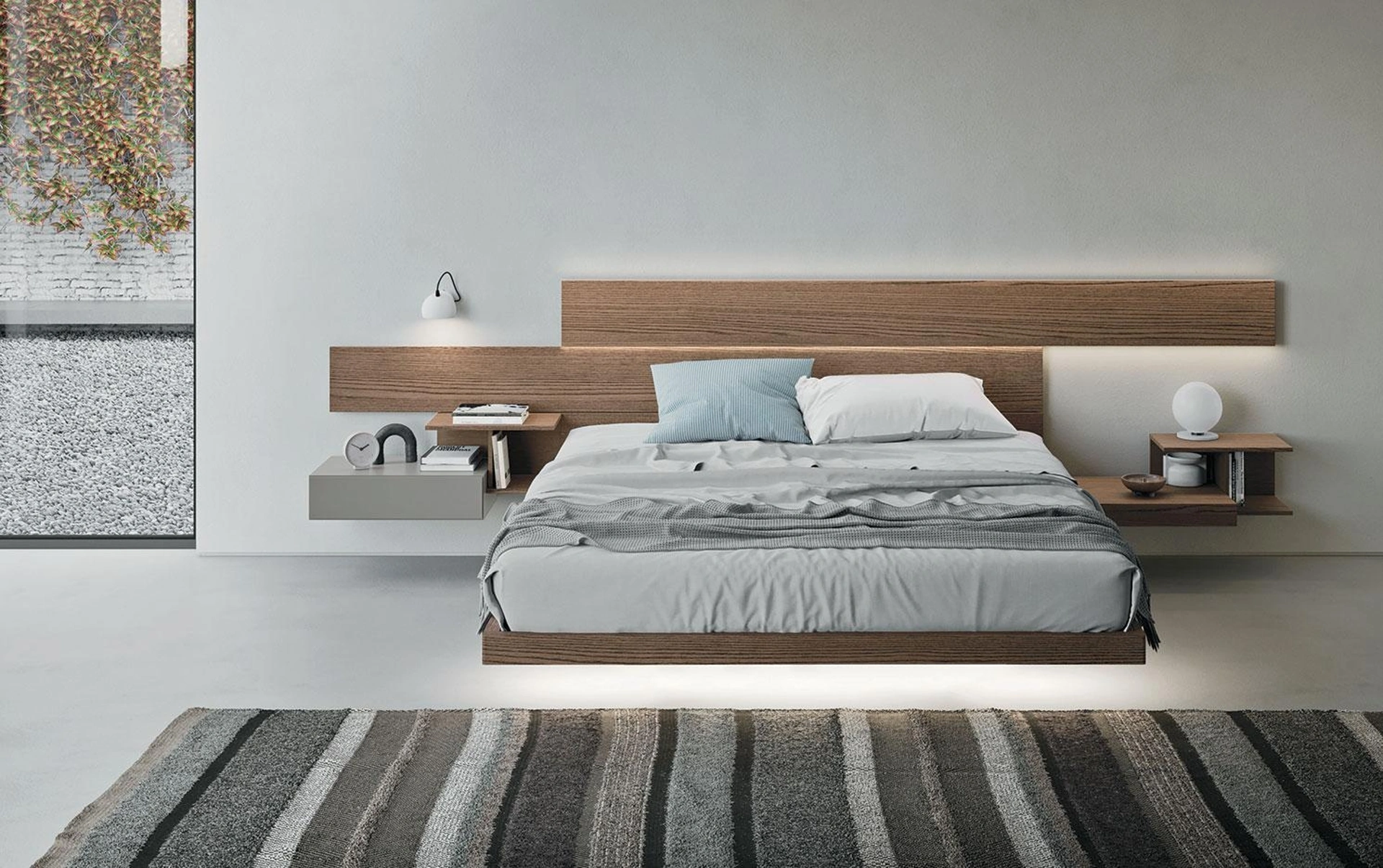 Il Letto di design Wall System Dreaming 03 di Mobilgam ricrea uno spazio intimo e confortevole in ogni camera da letto, garantendoti il riposo migliore e uno stile unico. Scegli cromie e texture e realizza il tuo progetto d’arredo nella camera da letto, progettandola proprio come l'avevi sognata. Se desideri una soluzione in legno, il modello visibile in foto è contraddistinto da materiali pregiati e forme decise, che invitano a goderti un riposo sereno e rigenerante. Durante la scelta di un buon modello di letto, valuta attentamente le sue dimensioni, i materiali, la forma e il suo stile rispetto ai restanti pezzi d'arredo.