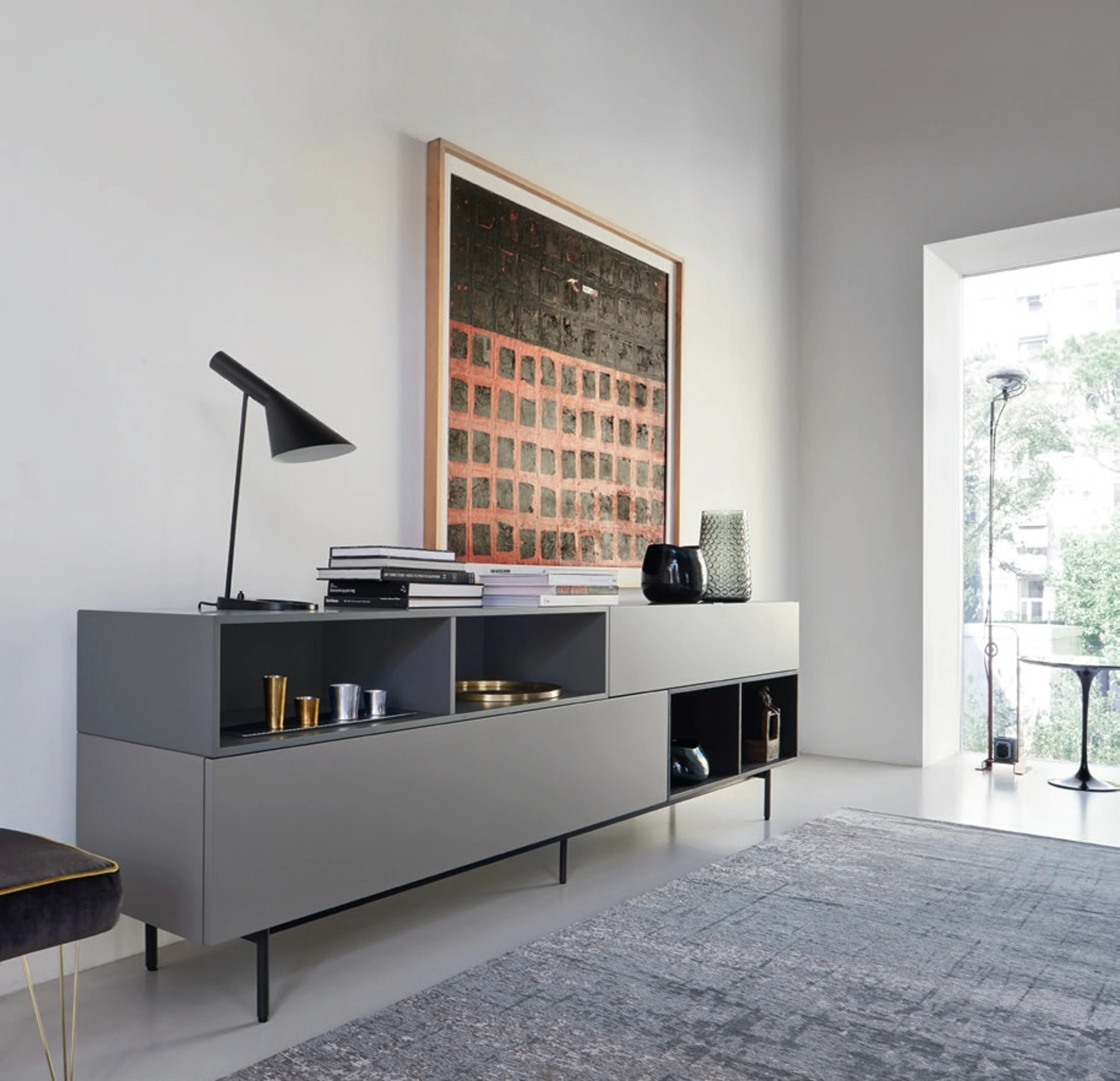 Unmobile soggiorno del genere valorizza in modo strategico i tuoi locali valorizzandoli appieno: contattaci e scopri come dare vita a un'atmosfera di grande personalità con mobili e complementi per il living. Le Madie, come il modello in laccato opaco mostrato in foto, sono capaci di personalizzare gli ambienti domestici grazie alla qualità di rivestimenti e materiali. Scopri la nostra collezione di Madie in laccato opaco del rinomato brand Sangiacomo, come il modello in foto, e potrai creare un soggiorno dinamico e operativo. Personalità accattivante e un design unico conquisteranno anche te: la Madia Lampo Open 24 di Sangiacomo è una delle soluzioni più belle in commercio.