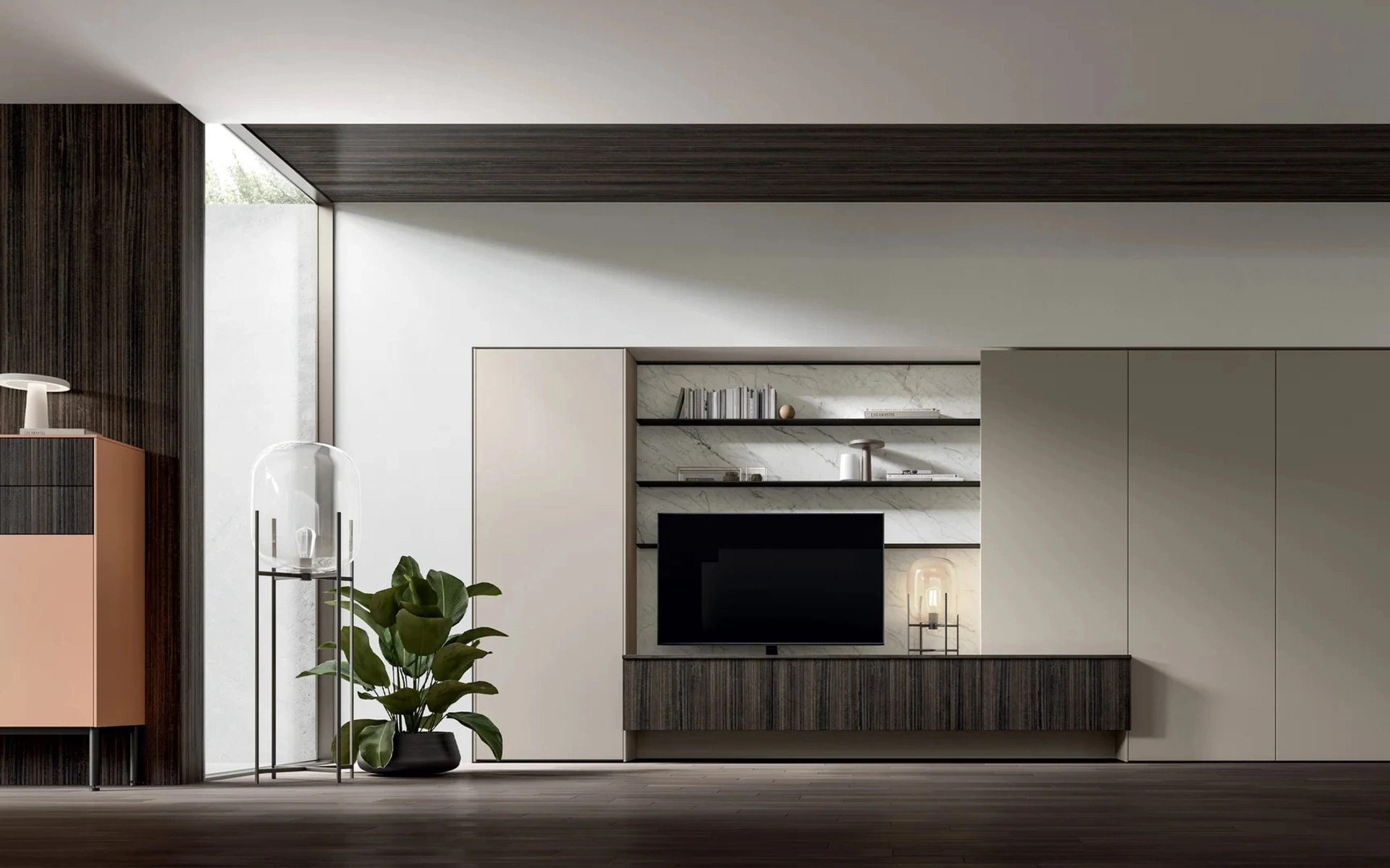I mobili soggiorno in laminato dalle linee moderne come il modello in foto sono davvero poliedrici e capaci di progettare la zona giorno valorizzando ogni angolo. Arredo3 propone inediti modelli di mobili soggiorno, diversi per stile e forme, finiture e elementi: scopri nel nostro showroom l'Arredamento Casa delle migliori marche. Poiché il soggiorno deve essere uno spazio pratico e di grande valore estetico, sono indispensabili alcuni mobili belli e funzionali come le Pareti Attrezzate. La Parete Attrezzata Living Kali 02 di Arredo3 in foto è una tra le più esclusive soluzioni d’arredo sul mercato: l'alta componibilità e le varie opportunità di progettazione la rendono bella e di grande qualità.