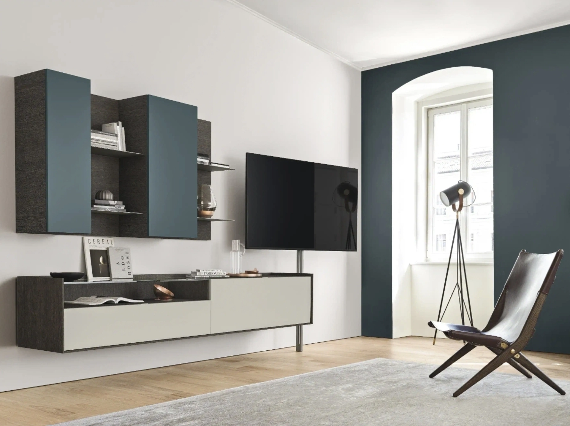 I mobili soggiorno in laccato opaco dalle linee moderne come il modello nella fotografia sono veramente versatili e capaci di allestire il living ottimizzando ogni angolo. La Parete Attrezzata sospesa Cabaret Glass 02 di Sangiacomo nella fotografia è una tra le più esclusive soluzioni d’arredo sul mercato: massima componibilità e le differenti opportunità di progettazione la rendono bella e di grande qualità. Sangiacomo mette a disposizione innovativi modelli di mobili soggiorno, diversi per stile e conformazioni, texture e componenti: scopri in negozio l'Arredamento Casa a Bologna delle migliori marche. Lasciati ispirare da una ricca gamma di arredi per la zona giorno e troverai la parete attrezzata che fa al caso tuo.