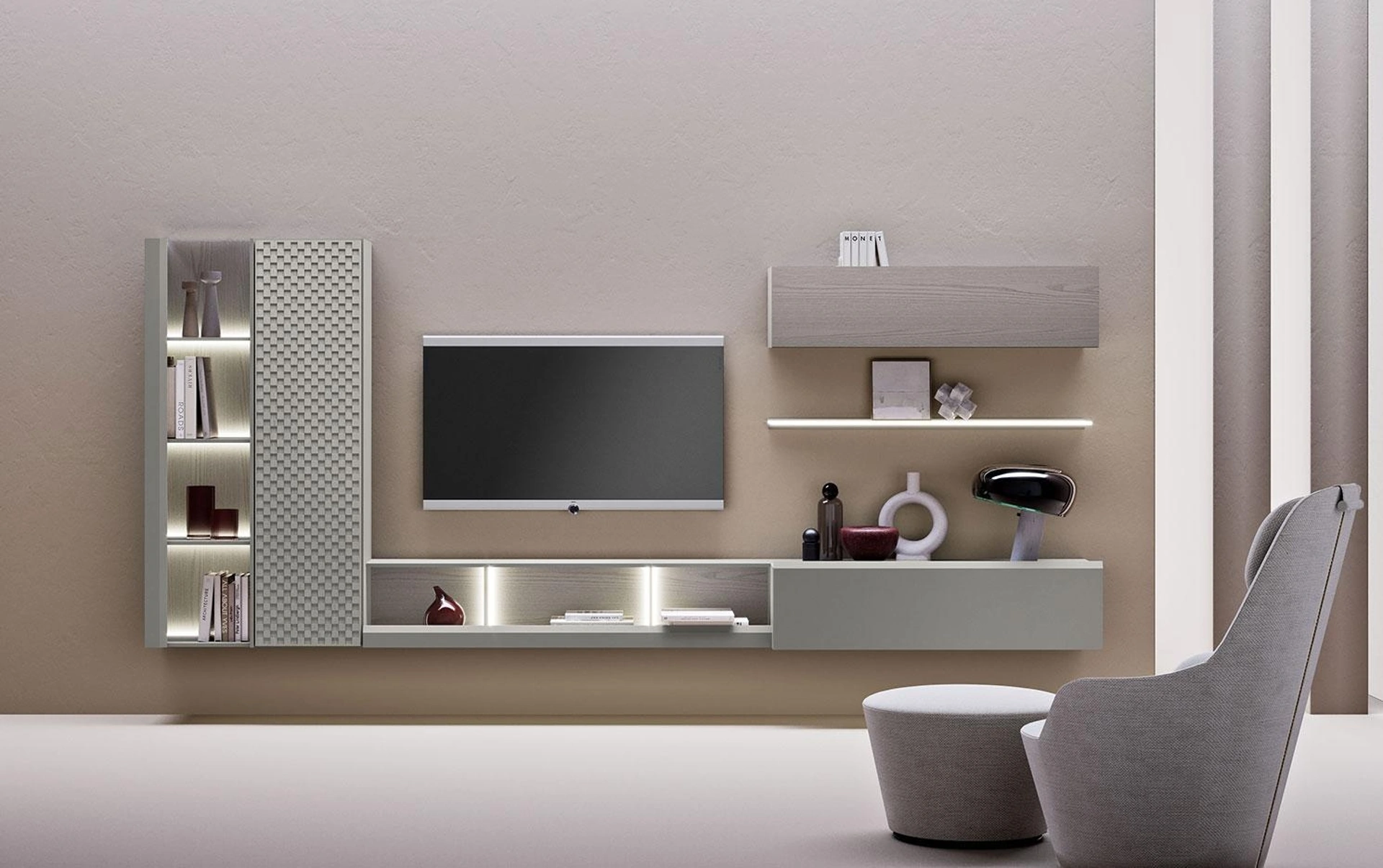 Mobilgam mette a disposizione originali modelli di mobili soggiorno, diversi per stile e conformazioni, texture e accessori: scopri nel nostro showroom l'Arredamento Casa delle migliori marche. Lasciati stuzzicare da un ricco catalogo di mobili per la zona giorno e potrai trovare la parete attrezzata che fa al caso tuo. La Parete Attrezzata sospesa Composizione Horizon 1003 di Mobilgam nella fotografia è una delle più esclusive soluzioni d’arredo sul mercato: grandi doti di componibilità e le diverse opportunità di progettazione la rendono bella e funzionale. I mobili soggiorno in laccato opaco dalle linee moderne come il modello nella fotografia sono davvero poliedrici e capaci di ammobiliare la zona giorno sfruttando bene ogni angolo.