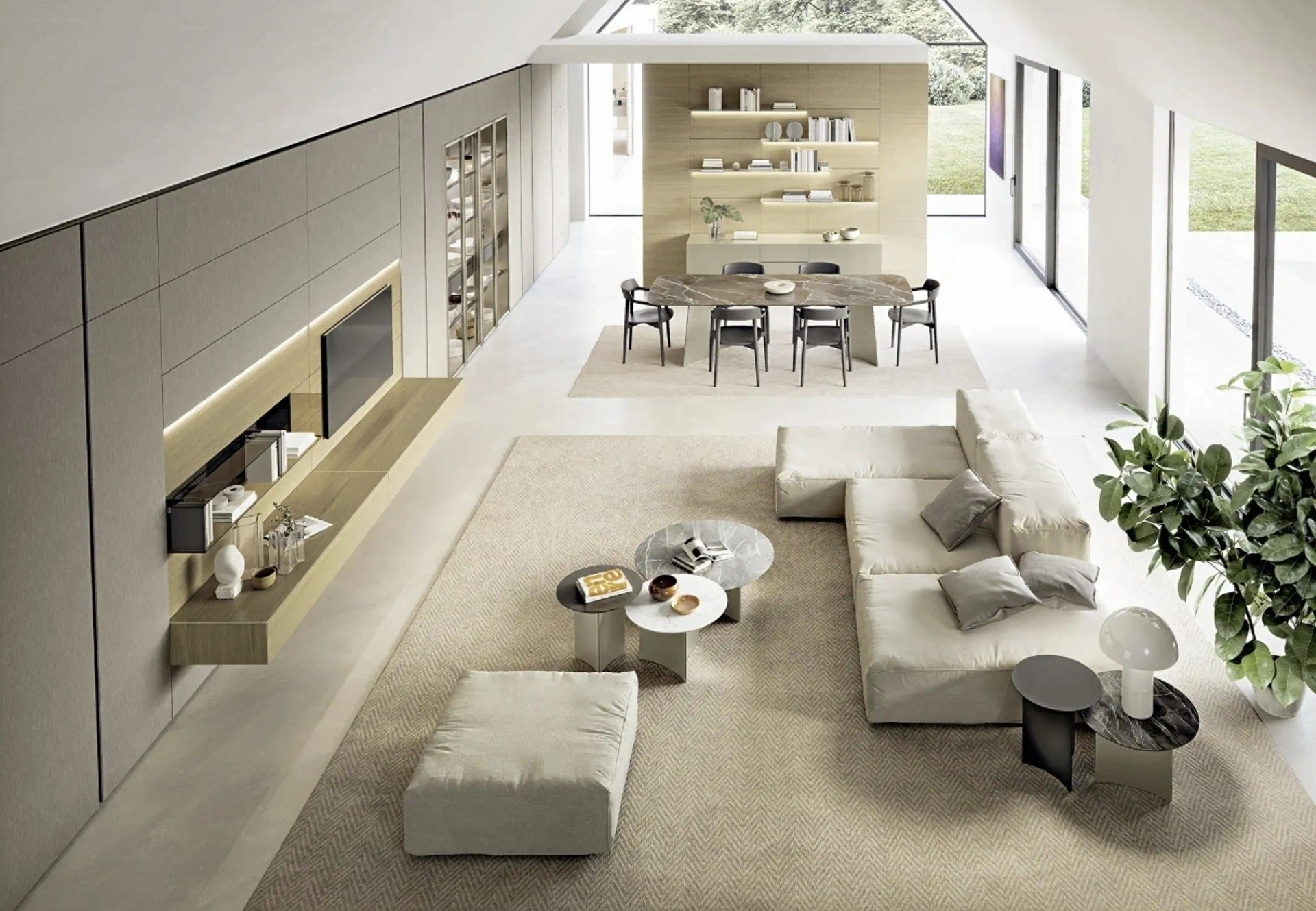 La Parete Attrezzata Domino Boiserie 02 di Sangiacomo nell'immagine possiede l'alta componibilità e diverse possibilità di caratterizzazione: scopri la parete attrezzata qui visibile e contattaci per maggiori info e preventivi. Per soddisfare le eterogenee problematiche abitative di ognuno, marchio mette a disposizione dei suoi clienti un ricco catalogo Pareti Attrezzate moderne particolarmente funzionali e connotate da un'estetica raffinata. A muro oppure a centro stanza per organizzare al meglio un open space, le più originali composizioni d’arredo sul mercato arredano la zona giorno usufruendo al meglio di lo spazio disponibile.