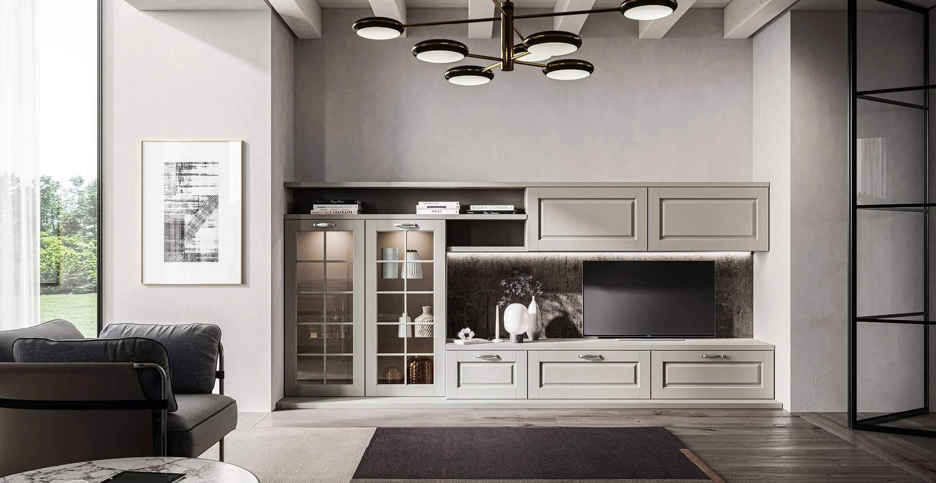 Anche in un living non generoso, questo tipo di arredo riesce a organizzare al meglio gli spazi sfruttando bene ogni angolo e garantendo massima componibilità tipica delle soluzioni classiche. Questa proposta rappresenta tutta la qualità che il marchio garantisce grazie a pluriennale competenza e grande passione nel campo dell'arredo e del design. La Parete Attrezzata Living Asolo di Arredo3 in foto, realizzata in legno, risolve le più particolari esigenze abitative di spazio e stile senza rinunciare alla ricerca stilistica. Se cerchi mobili salvaspazio e realizzabili su misura per te, contattaci e ottieni informazioni sull'Arredamento Casa delle migliori marche.