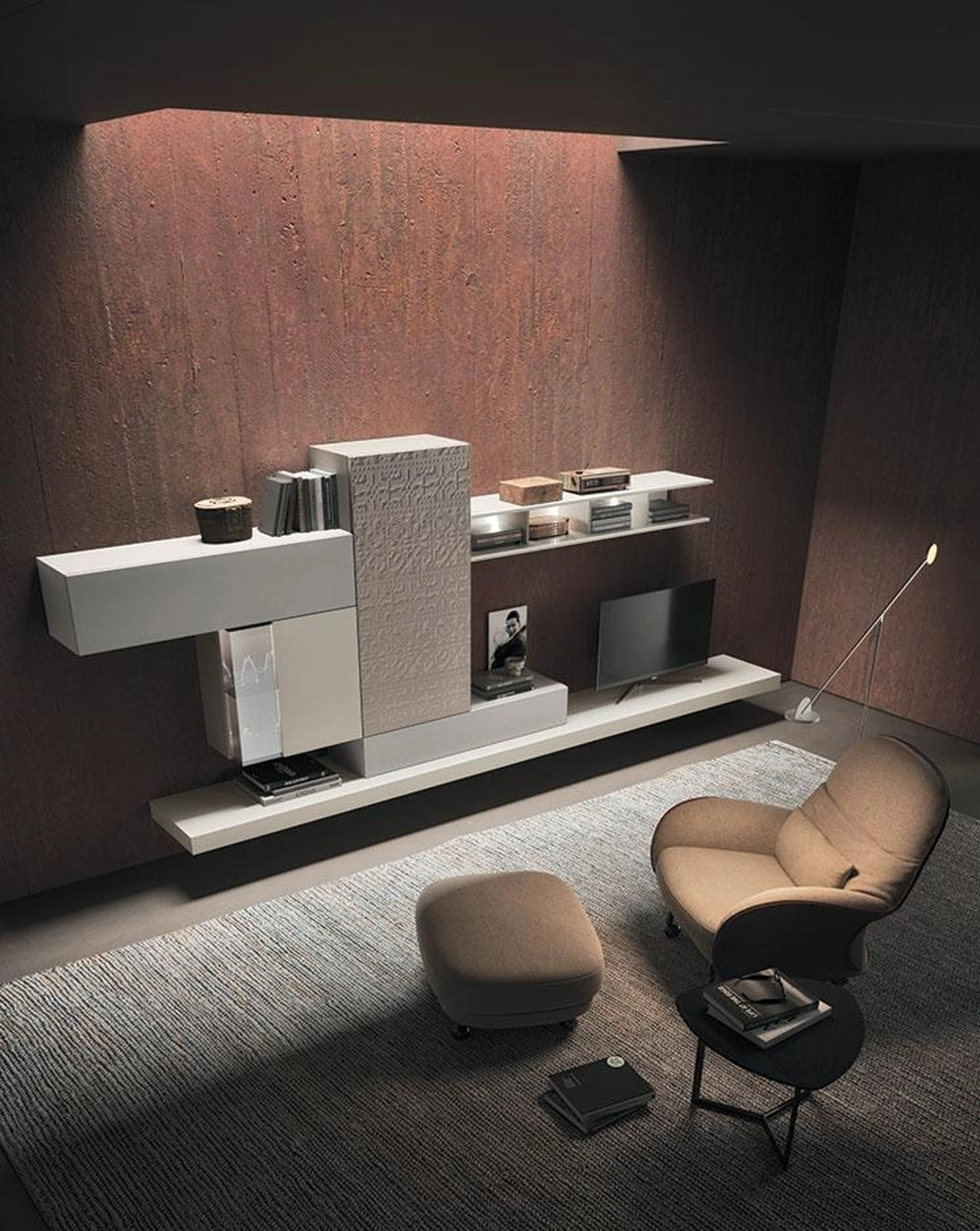 Le Pareti Attrezzate hanno conquistato un posto importante nella zona giorno delle nostre case: sono mobili plurifunzionali e salvaspazio sempre realizzabili su misura. Attraverso un gioco dinamico di accostamenti fra componenti a giorno o vani chiusi, le Pareti Attrezzate moderne arredano il living ottimizzando ogni spazio. Per informazioni e preventivi sulla Parete Attrezzata Composizione Horizon 918 di Mobilgam nella fotografia contattaci! Il modello proposto è realizzato in laccato opaco, ma grazie ad un'infinità di finiture, tonalità e forme, potrà adattarsi a stili di ogni genere.