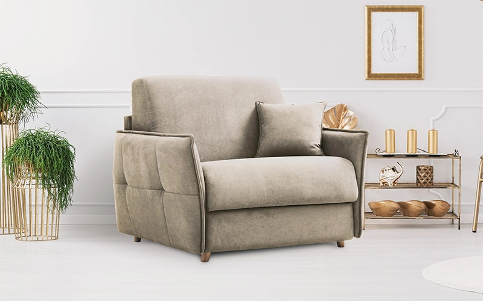 Completare il mood della propria casa non è cosa di poco conto: arrivano in nostro soccorso le Poltrone. In foto puoi vedere uno dei modelli di Aerre, specialista nella realizzazione di imbottiti per il soggiorno e le altre stanze di casa. Poltrona letto Zelig di Aerre: tutti i prodotti del brand sono garanzia di resistenza negli anni, qualità di finiture e rivestimenti, forme decise e un design unico. Se desideri un modello in tessuto, scopri ora un ricco catalogo di soluzioni di grande design.