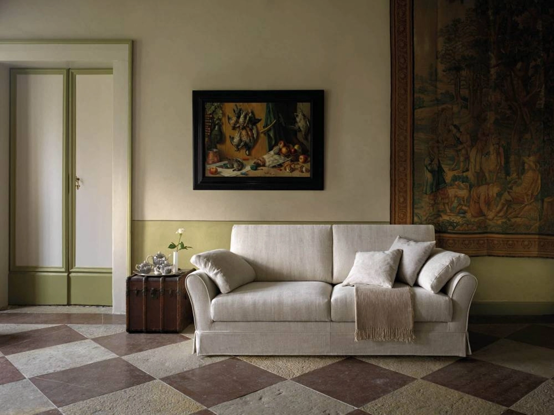 Divano classico lineare Diva di Samoa: crea uno spazio intimo e confortevole in spazi classici dall'estetica raffinata. Se vuoi divani e poltrone lineari come il modello nella fotografia, contraddistinto dai volumi che invitano a trascorrere i tuoi momenti di relax. I nostri Salotti vengono progettati per essere abbinati a elementi accessori di ogni tipo, come tavolini, abat jour e piantane o in combinazione con ulteriori divani in tessuto. Il catalogo Samoa propone tanti spunti per decorare gli interni in nome di funzionalità e valore estetico, mettendo al centro il tuo comfort.