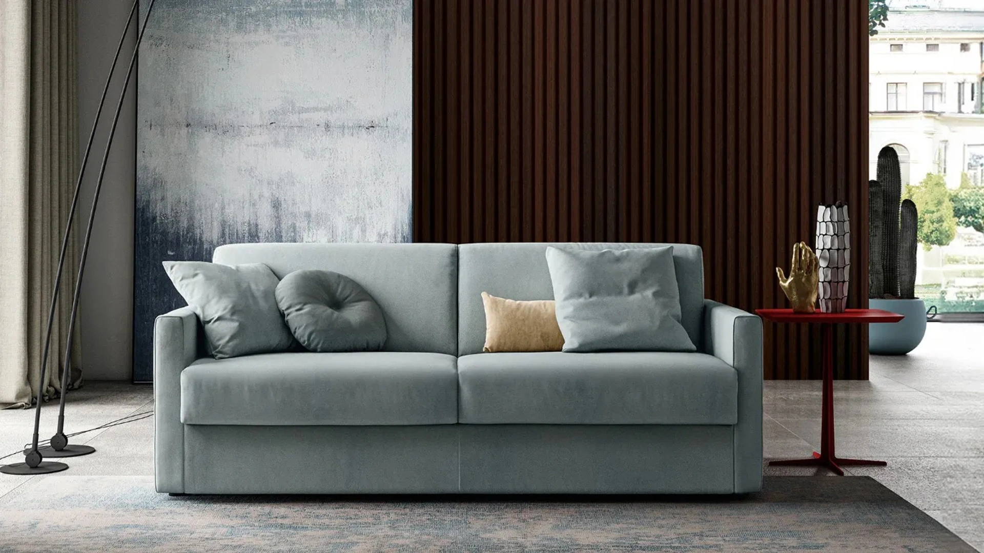 La serie di divani del marchio in questione presenta tanti spunti originali per ammobiliare il soggiorno in nome di funzionalità, comfort e stile. Divano Letto Tibby di Doimo Salotti: crea uno spazio accogliente e confortevole in spazi moderni dall'estetica raffinata. Se vuoi imbottiti con letto come il modello nell'immagine, caratterizzato dai volumi che invitano a goderti i tuoi momenti di riposo. Il catalogo Doimo Salotti presenta tanti spunti per ammobiliare l'habitat in nome di funzionalità e estetica, mettendo al centro il tuo comfort.