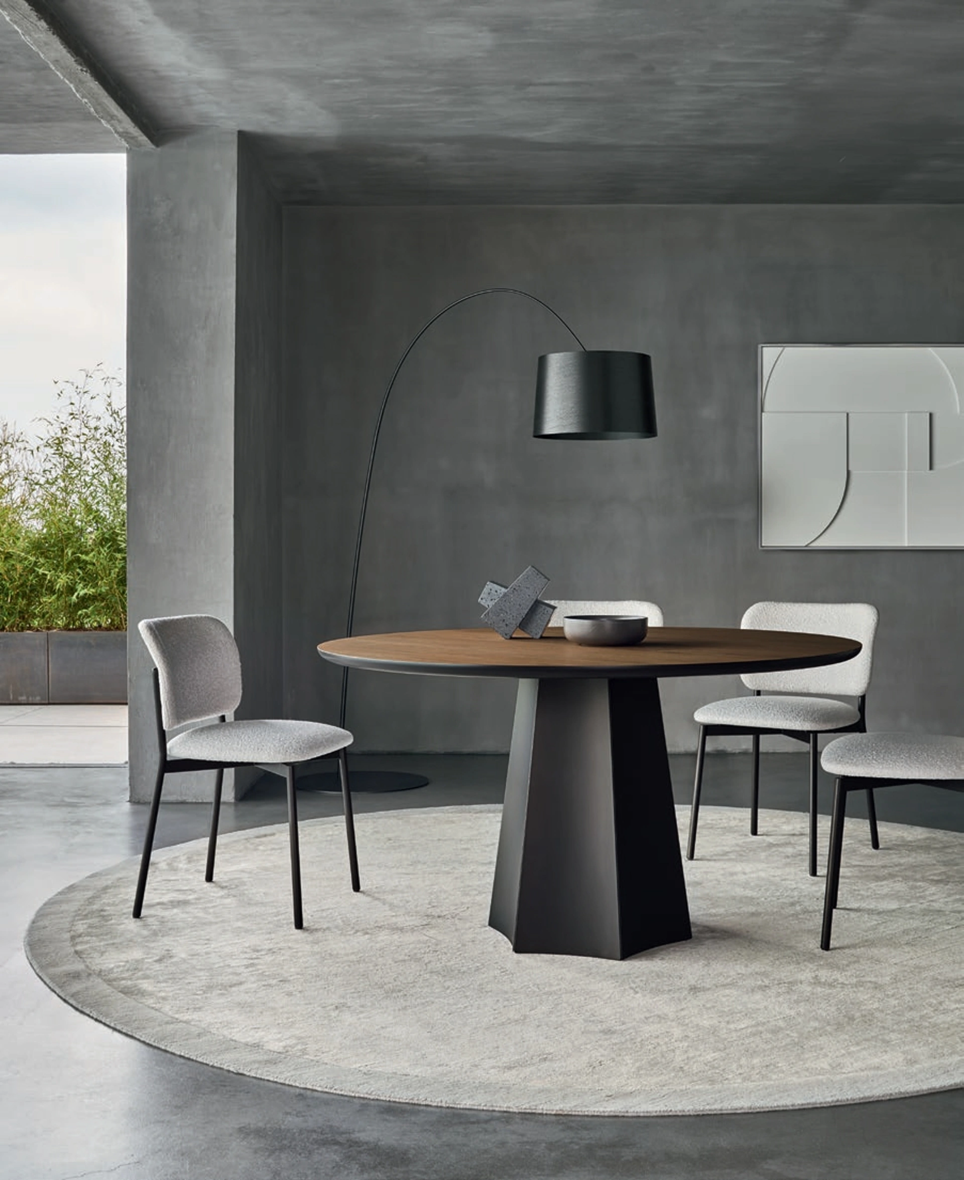 Se desideri un tavolo da pranzo di grande design, contattaci e ricevi informazioni e preventivi sul modello visibile in foto. Tavolo rotondo Poliedro di Sangiacomo: realizzato in materiali di prima scelta è connotato dalle linee decise del top e da un basamento elegante e raffinato. Ideali per dare vita a degli accostamenti unici con sedie e complementi design, i Tavoli fissi della marca sono soluzioni tra le più esclusive in commercio, ideali per il living e la cucina. Un modello come quello nella fotografia, in abbinamento alle giuste sedie, saprà arricchire il look delle stanze domestiche dedicate per eccellenza alla convivialità.