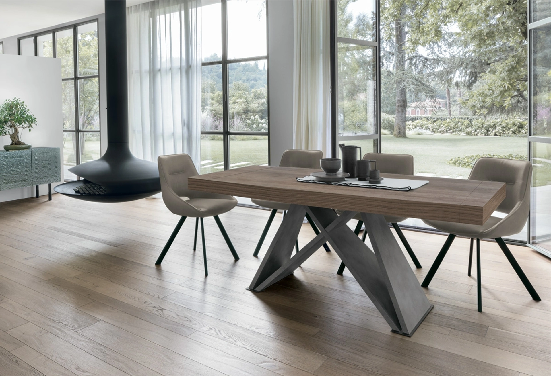 Tavolo allungabile Sigma di Target Point: realizzato in materiali durevoli è contraddistinto dalle forme decise del top e da un basamento ricercato ed elegante. Se cerchi un tavolo da pranzo di grande design, contattaci e ricevi info e preventivi sul modello visibile in foto. Un modello come quello in foto, in abbinamento alle giuste sedie, saprà valorizzare il mood delle stanze di casa dedicate in assoluto alla socializzazione. Ideali per dare vita a degli accostamenti unici con sedie e complementi design, i Tavoli allungabili del brand sono soluzioni tra le più originali in commercio, ideali per il living e la zona cucina.