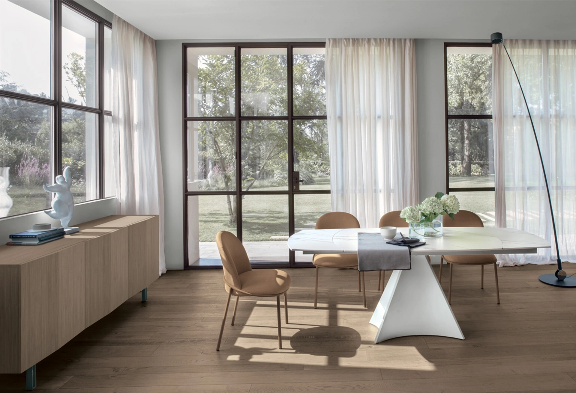 Tavolo allungabile e girevole Tornado di Target Point: realizzato in materiali durevoli è connotato dalle forme decise del top e da un basamento elegante e raffinato. Ideali per dare vita a degli accostamenti unici con sedie e complementi design, i Tavoli allungabili della firma sono soluzioni tra le più esclusive in commercio, ideali per il living e la zona cucina. Un modello come quello nell'immagine, in abbinamento alle giuste sedie, saprà arricchire il look delle stanze domestiche dedicate in assoluto alla socializzazione. Il noto e conosciuto marchio Target Point, leader nella produzione di mobili in gres, ha scelto per la sua serie una vasta gamma di materiali, forme e cromie.