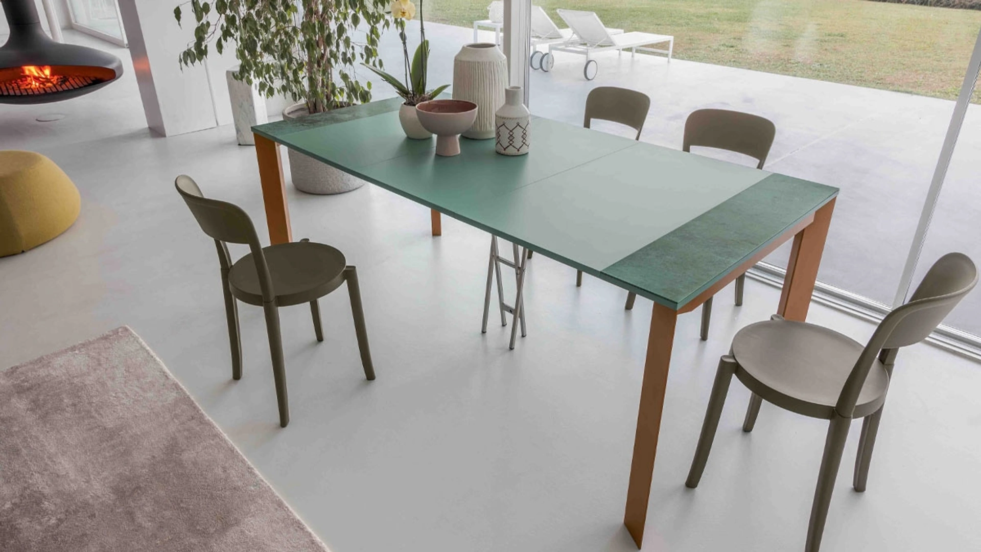 Tavolo Consolle allungabile Trek di Altacom: realizzato in materiali pregiati è connotato dalle forme decise del top e da un basamento elegante e raffinato. Se desideri un tavolo da pranzo di alto contenuto estetico, contattaci e ricevi informazioni e preventivi sul modello mostrato in foto. Ideali per dare vita a degli accostamenti unici con sedie e complementi moderni, i Tavoli consolle del brand sono soluzioni tra le più originali in commercio, ideali per il living e la zona cucina. Un modello come quello nella fotografia, in abbinamento alle giuste sedie, saprà completare il mood delle stanze domestiche dedicate in assoluto all'ospitalità.